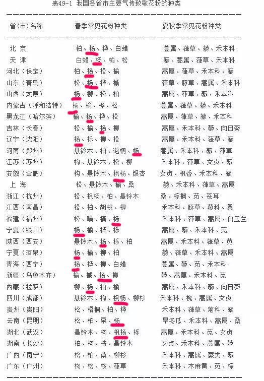春季你中招了嗎?全國(guó)各省市致敏花粉對(duì)照表表