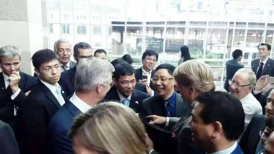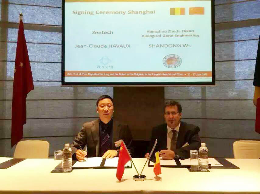 2015年6月20至27日比利時國王及王后陛下對中華人民共和國進行國事訪問,2015年6月25日浙大迪迅生物基因工程有限公司董事長吳善東和比利時Zentech.S.A公司CEO Jean-Claude Havaux受到比利時國王(菲利普)及王后陛下(瑪?shù)贍柕拢┙右姴⒑炇鹬斜葍蓢捻椖亢献鲄f(xié)議,促進了雙方交流,為雙方的國際合作奠定良好基礎(chǔ)。
